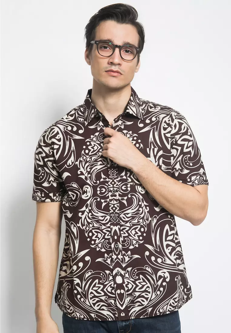 LGS - Kemeja Casual - Motif Batik - Coklat - Regular Fit