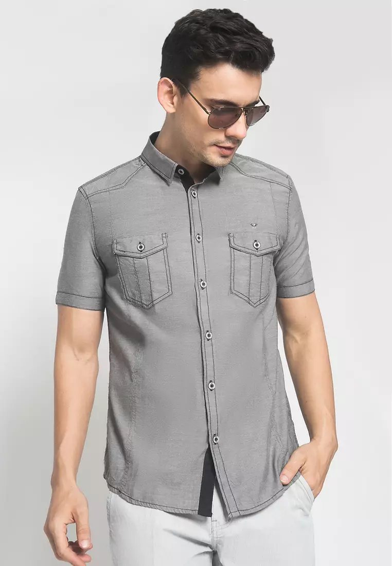 LGSLGS - Kemeja Casual Pria - Double Pocket - Abu - Slim Fit - JSH.391.S1070F.817.C413800.00310350.00