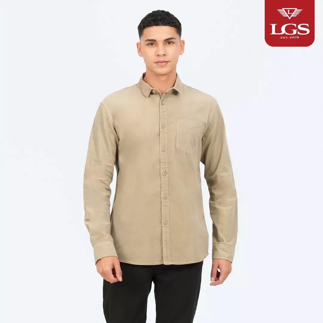 LGSLGS - Kemeja Casual Pria - Lengan Panjang - Polos - Kantong Saku Aktif - Coklat - JSH.360.S2073F.1024.C-L/S559800.00419850.00