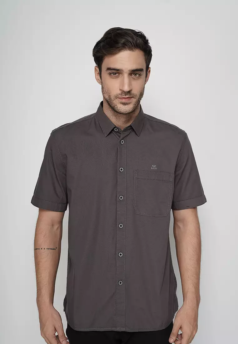 LGSLGS - Kemeja Casual Pria - Lengan Pendek - Coklat Gelap - CSH.271.S1097.175.C469900.00234950.00