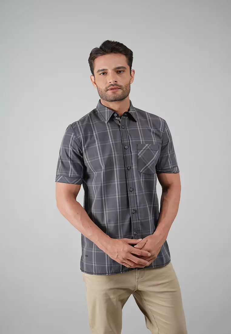 LGS - Kemeja Casual Pria - Lengan Pendek - Motif Kotak-Kotak - Abu-Abu - CSH.270.S570.1273.C