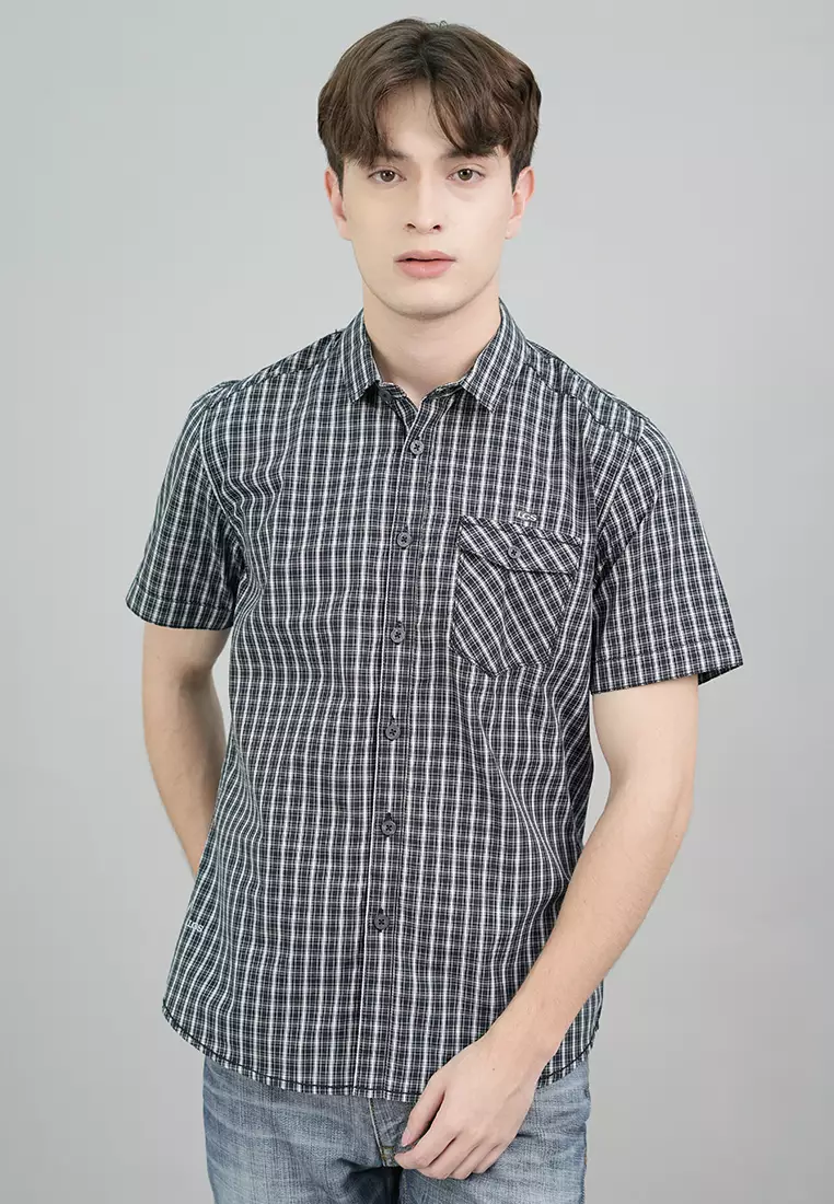 LGS - Kemeja Casual Pria Lengan Pendek Motif Kotak-Kotak Hitam Slim Fit - JSH.390.S1178F.951.C