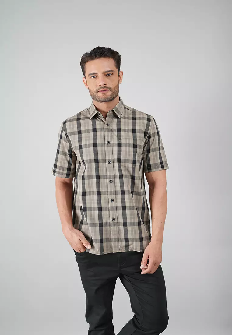 LGS - Kemeja Casual Pria - Lengan Pendek - Motif Kotak-Kotak - Warna Kombinasi - CSH.270.S570.1278.C