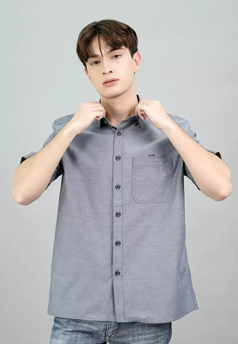 LGSLGS - Kemeja Casual Pria Lengan Pendek Motif Tekstur Polos Reguler Fit Warna Abu-Abu - CSH.271.S1097.200.C459900.00344925.00