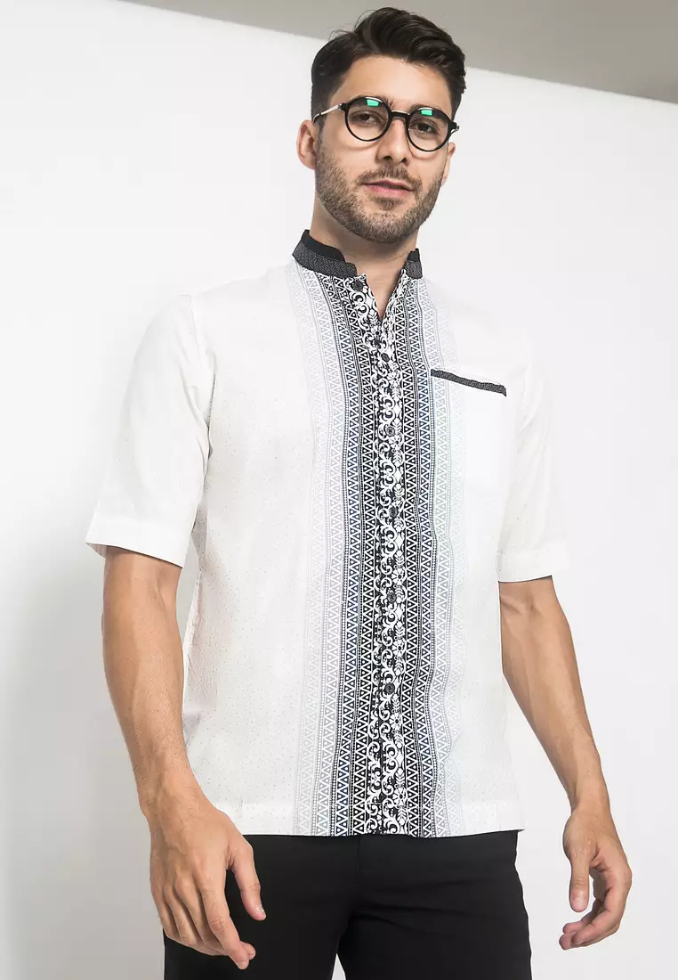 LGS - Kemeja Koko Pria - Lengan Pendek - Motif Digital Print Tengah - Putih - CSH.292.S1026K.322.C