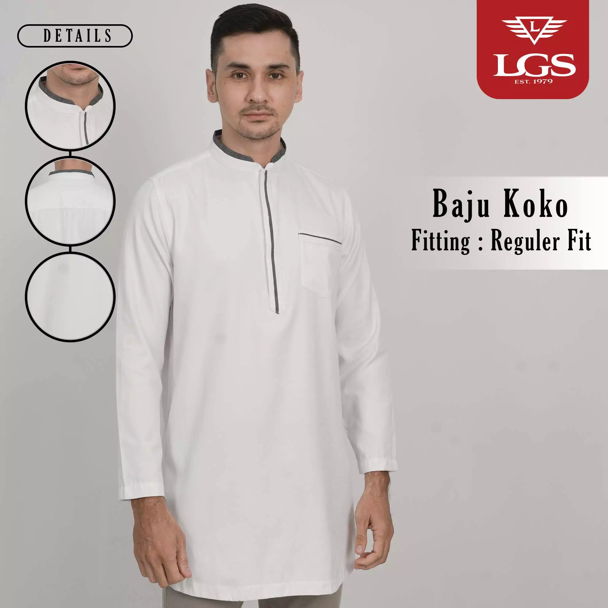 LGS - Kemeja Koko Pria - Reguler Fit - Kerah Shanghai - Putih - Lengan Panjang - CSH.283.S2072K.445.C-L/S