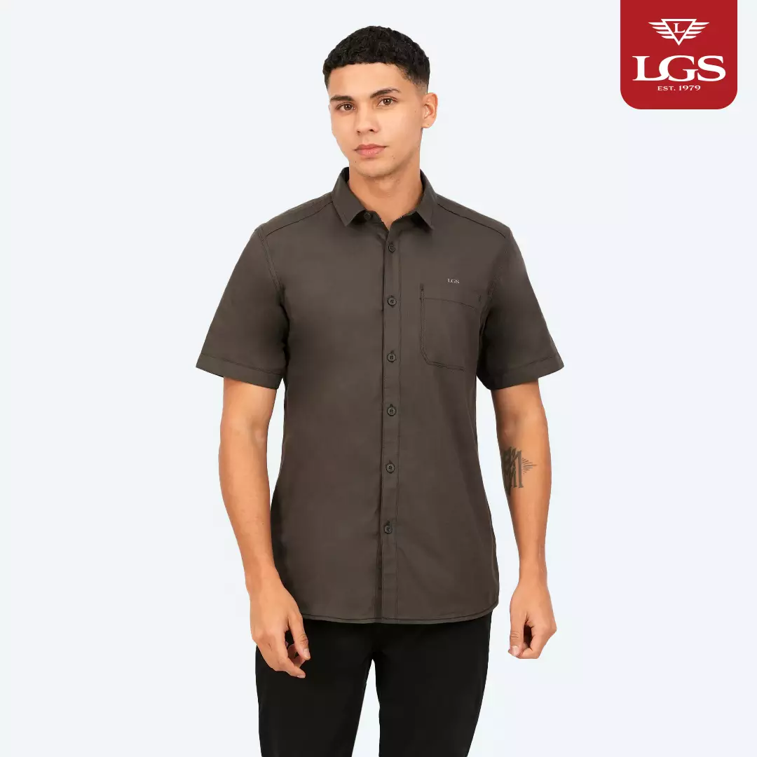 LGSLGS - Kemeja Pria - Man Shirt - Slim Fit - Bahan Nyaman - Lengan Pendek - Abu Gelap - JSH.391.S2075F.1030.C459800.00344850.00