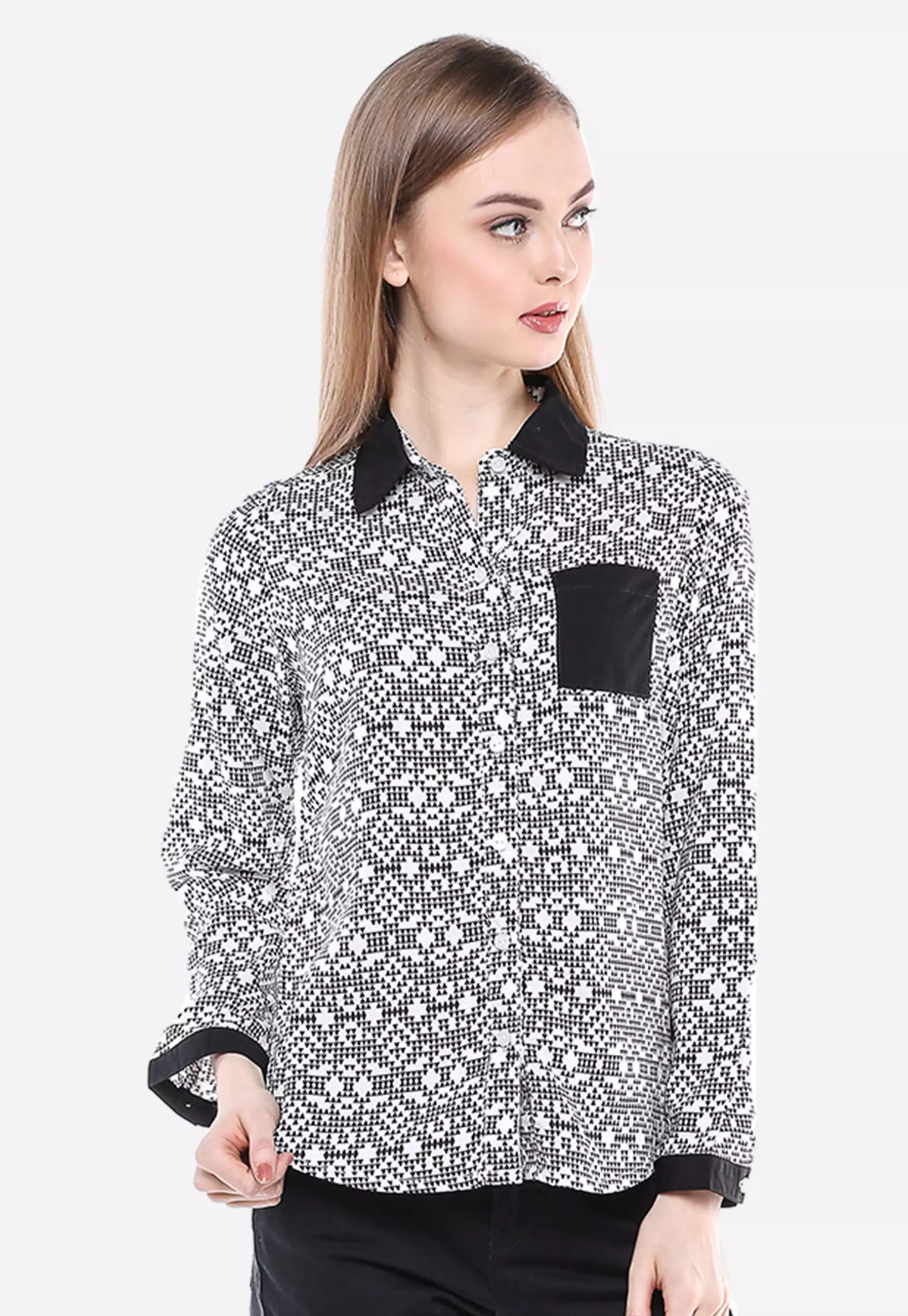 LGS - Regular Fit - Kemeja Wanita - Hitam/Putih - Kotak-kotak