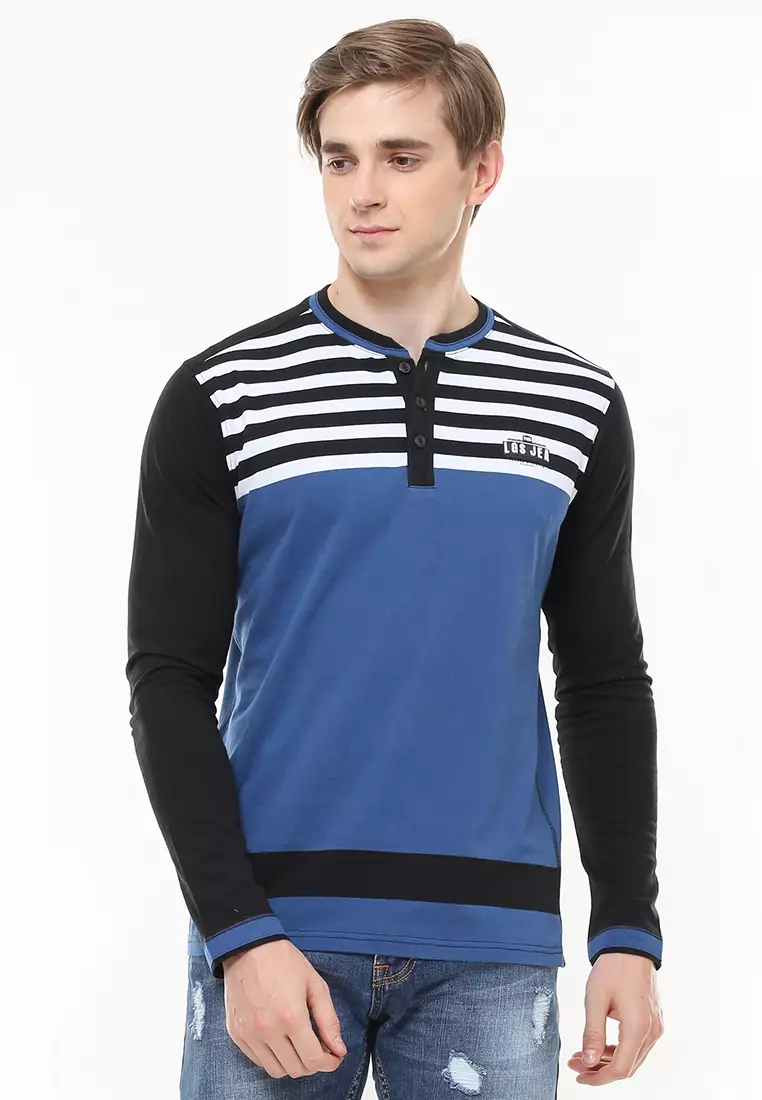 LGS - Slim Fit - Kaos Fashion - Salur - Kombinasi Warna - Biru
