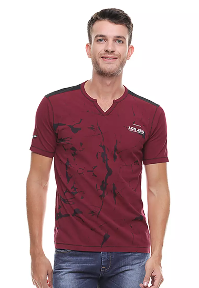 LGSLGS - Slim Fit - Kaos Fashion - Vneck - Sablon Abstrak - Merah - JTS.321.M2241F.01.C288800.00144400.00