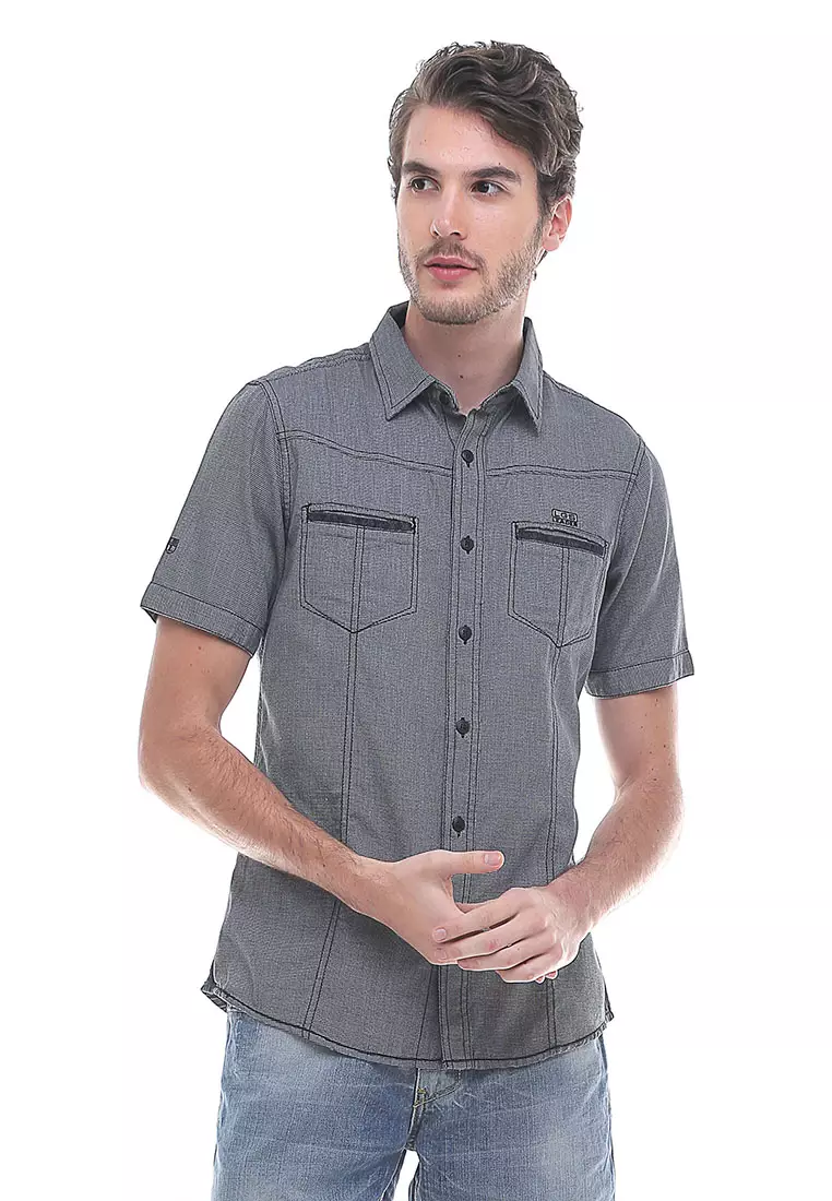 LGSLGS - Slim Fit - Kemeja Casual Pria - Lengan Pendek - Abu - Motif Polos - JSH.390.S583F.433.C359800.00179900.00