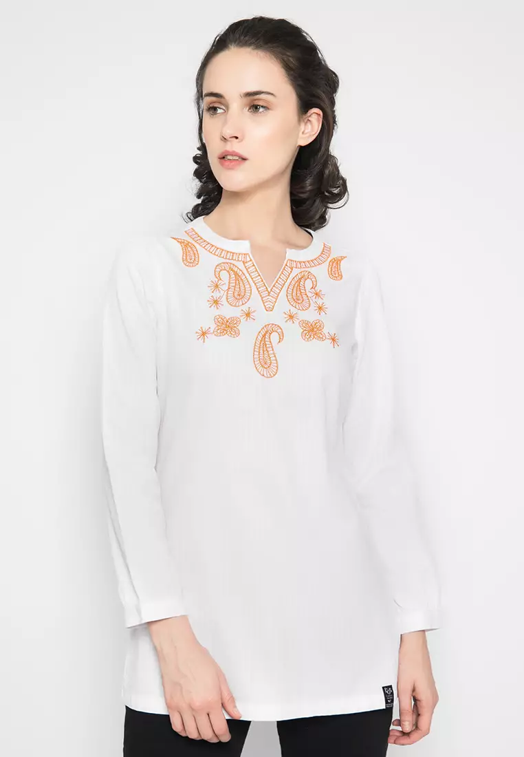 LGS - Tunik Wanita - Bordir Emas - Putih - LLSH.385.P1028.O337.7C L/S