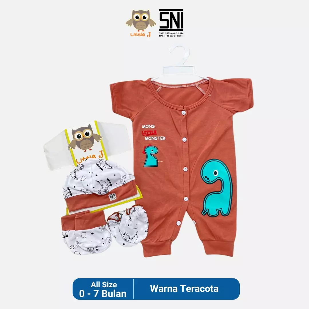 Little JBasic Mons Little Dino Coklat -Romper Bayi - Romper Set Baby 4 in 1 Bayi Laki laki Bayi Perempuan ( Sarung tangan,Sarung Kaki,Topi,Baju)105000.00