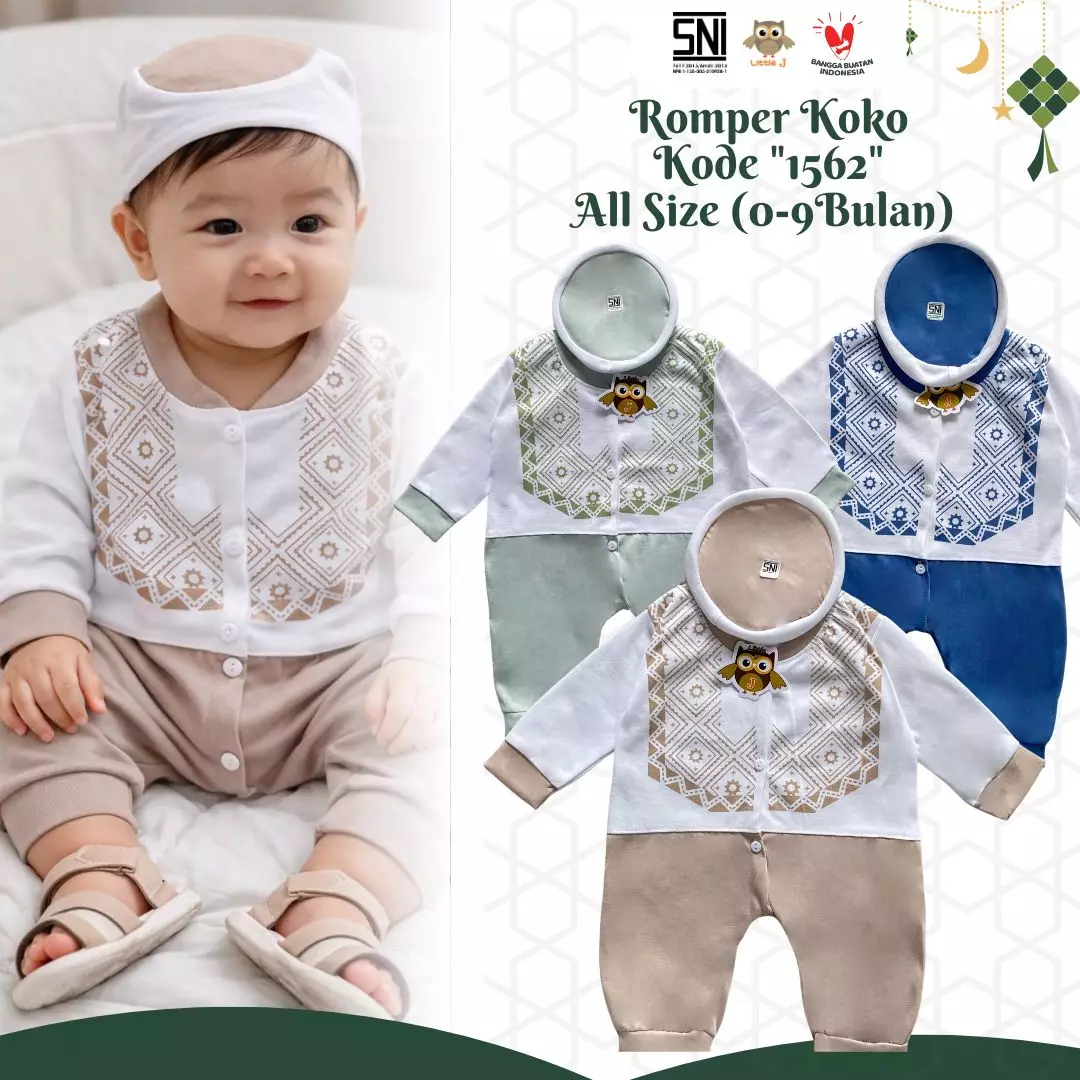 Little JLittle J - (1562 COKLAT) Raya Collection Romper Koko Baby Setelan Baju Koko Bayi SNI Muslin Cowok Jumper Koko 0-9 Bulan Peci Double Knitted Sablon Aplikasi Kudung 3 Kancing Hidup98000.00