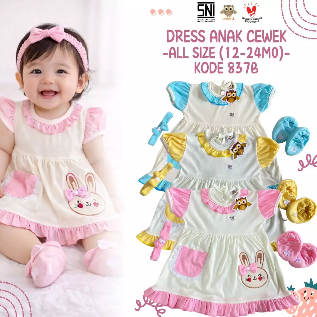 Little JLittle J - (837B) Dress Bayi Perempuan Lucu Motif Kelinci + Headband & Sepatu | Dress Anak Cewek 1–2 Tahun (12–24M)120000.0050000.00