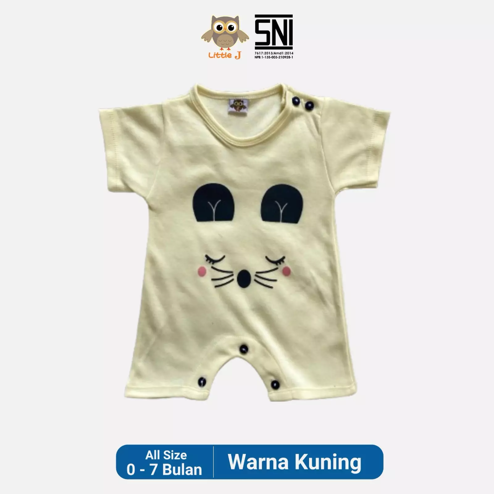 Little J Jumsuit Bayi Jumper Pendek Anak Cewek Romper Baju Kodok Motif Kucing SNI Lokal