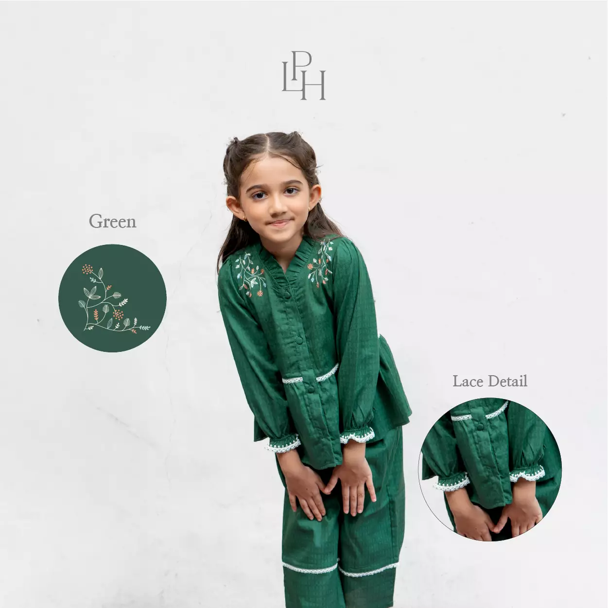 Little Palmerhaus - Baju Lebaran 2026 - Rihla Girl Attire Set (Setelan Baju Muslim Anak Perempuan) Green