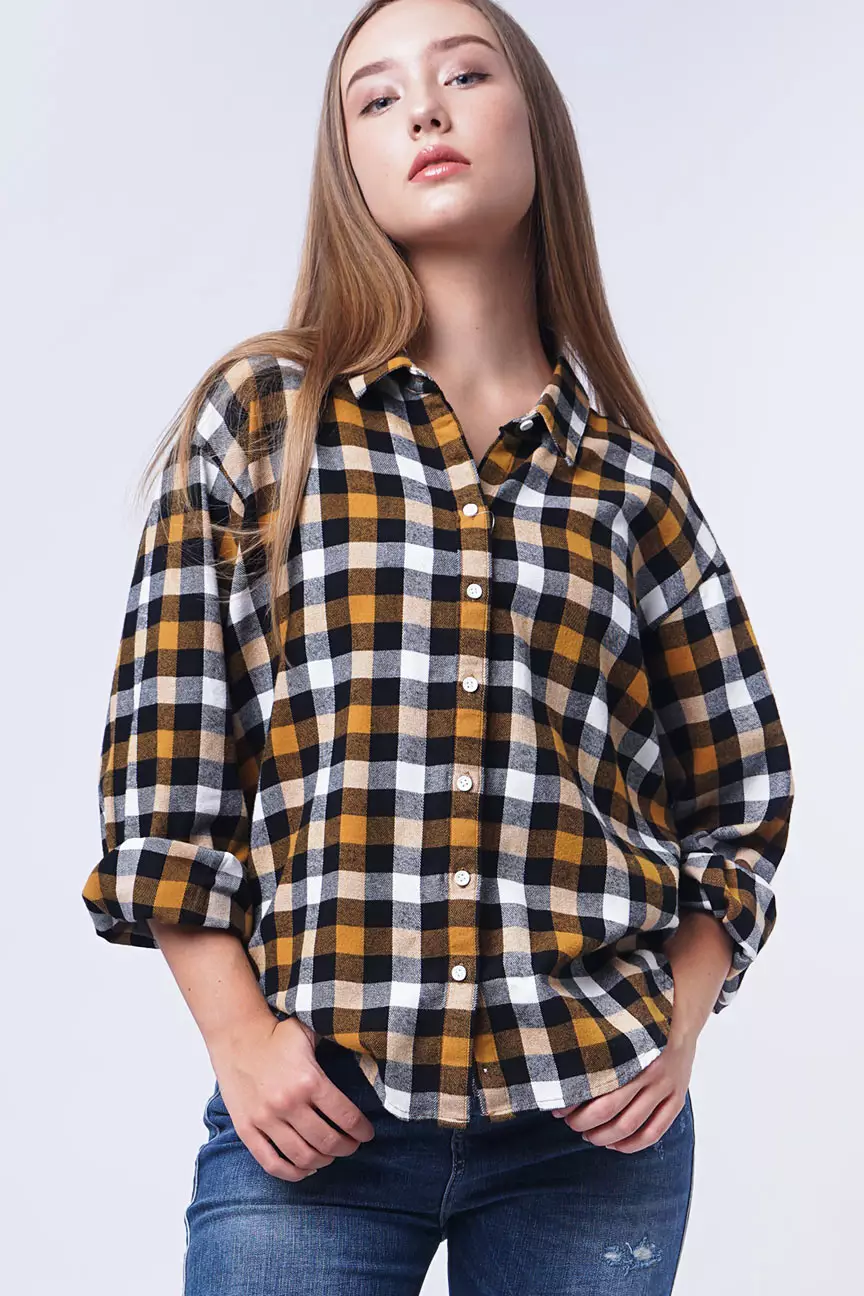 Kemeja Flanel Wanita Maeva Mustard Black