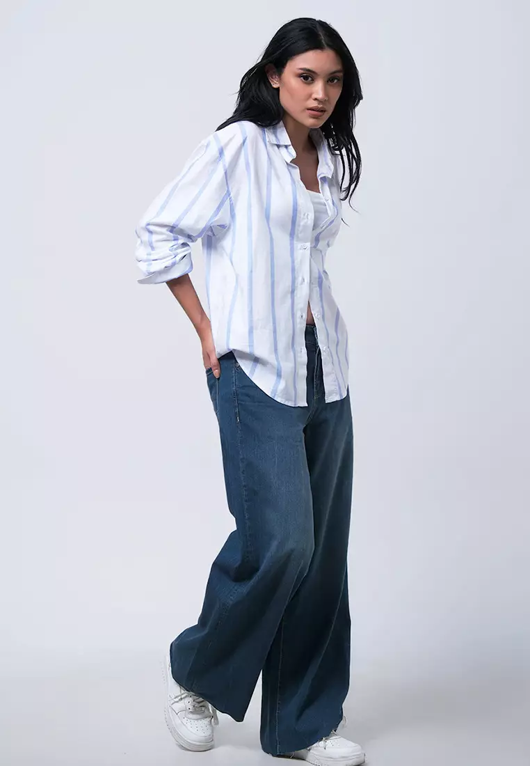Kemeja Wanita Juanna White Blue