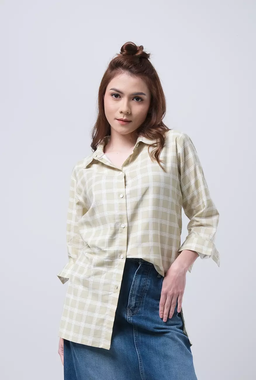 Kemeja Wanita Rona Lime Offwhite