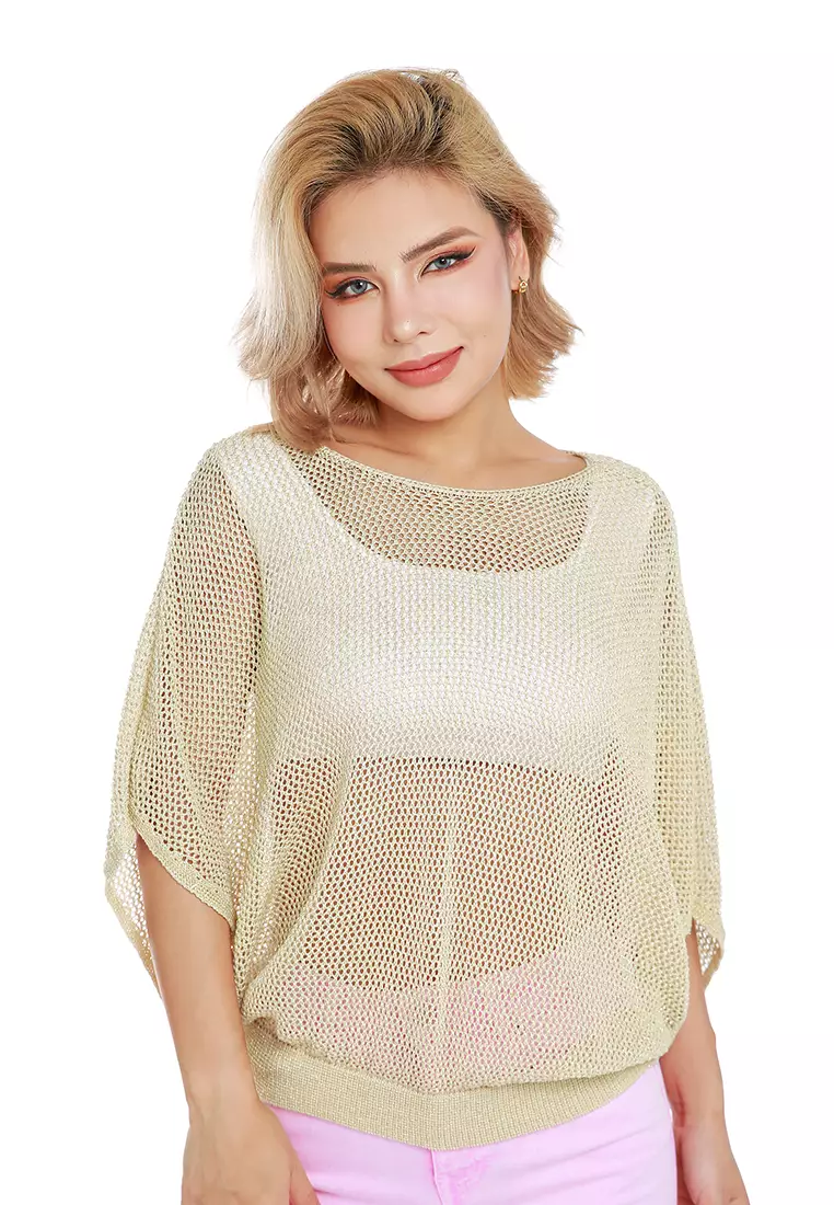 Atasan Tipis Rajutan dengan Warna Krem/Emas