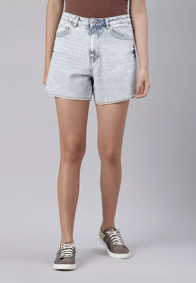 Biru Celana Pendek Jeans Mentah Mencuci Asam