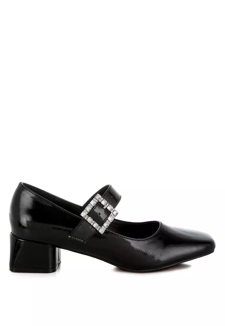 Bros Diamante Metalik Mary Jane Pumps Warna Hitam