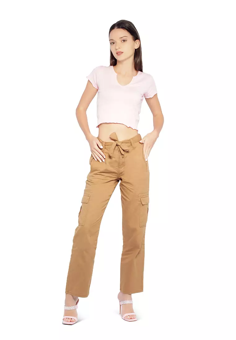 Celana kantong kertas dasi kupu-kupu pinggang khaki