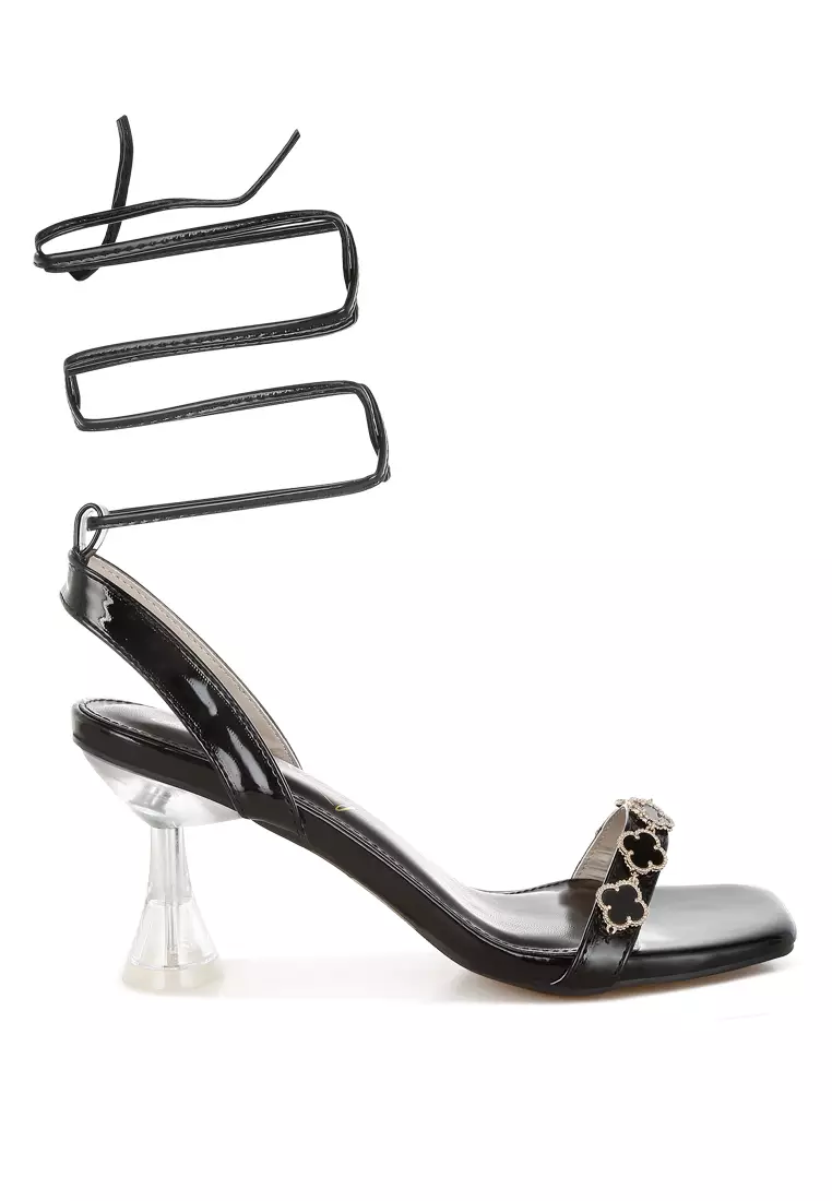 Charm Detail Spool Heels In Black