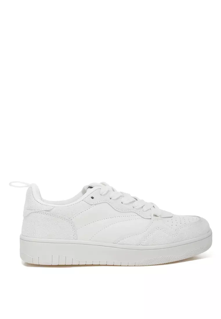 Faux Leather Casual Sneakers in White