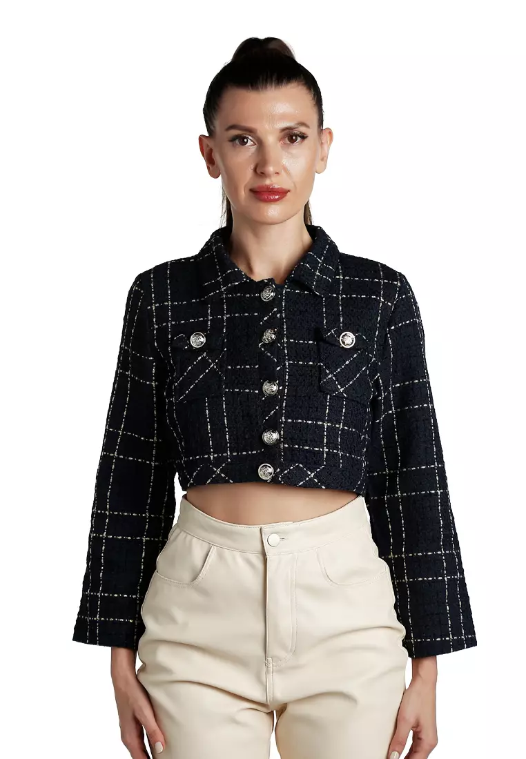 London RagJaket Kancing Tenun dengan Saku Lipat Warna Navy2224929.00