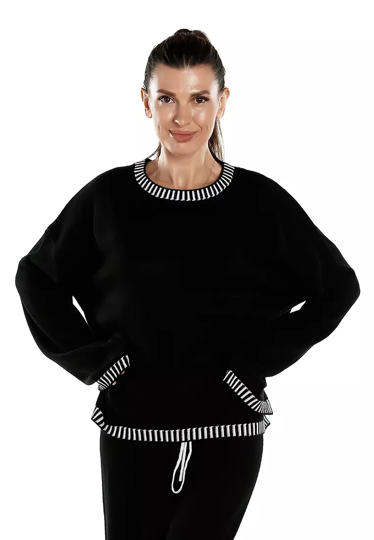 Jumper Sweater Rajut Detail Jahitan Kontras dalam Monokrom