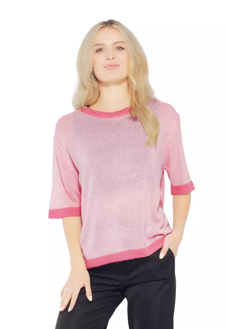 London RagKaos Lengan dan Leher Kontras Merah Muda2144029.00