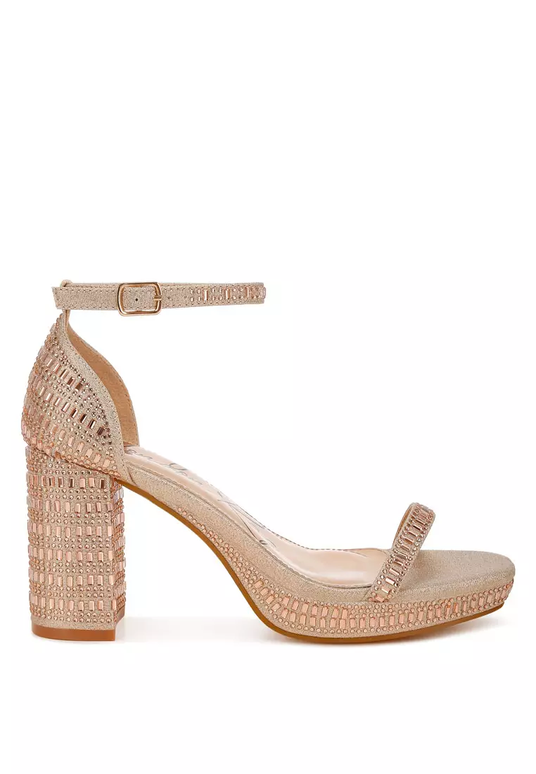 Sandal Blok Berhias Berlian Imitasi Warna Emas