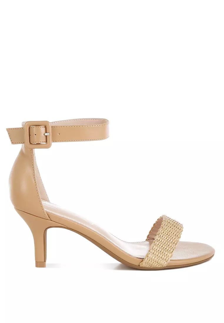 Sandal hak anak kucing Rafia warna Natural