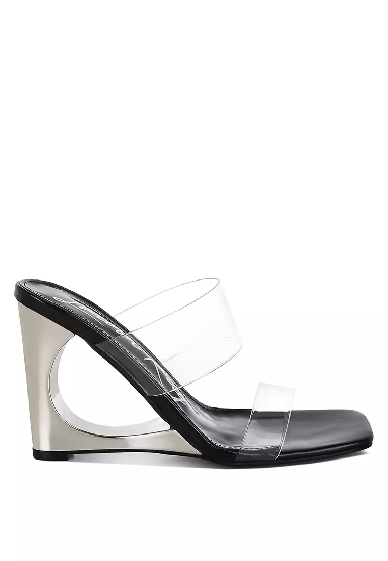 Sandal Hak Wedges Fantasi Bening Warna Hitam