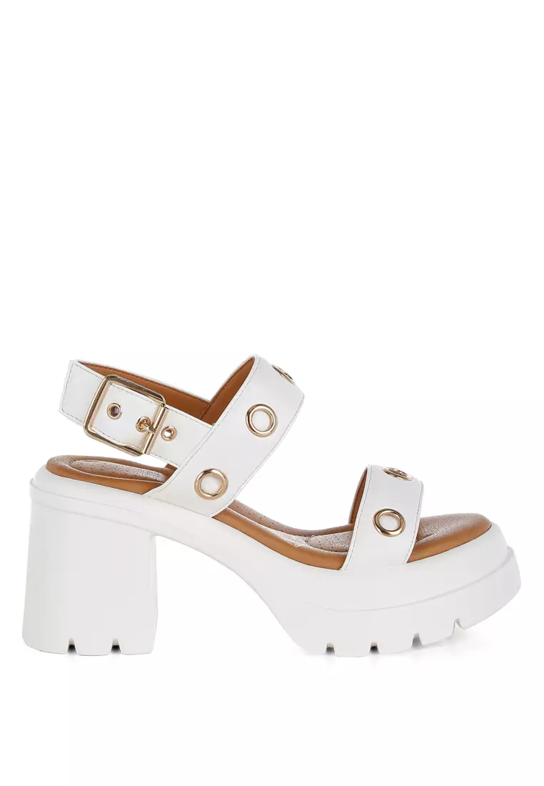 Sandal Platform Bertumit Detail Lubang Tali Warna Coklat Muda