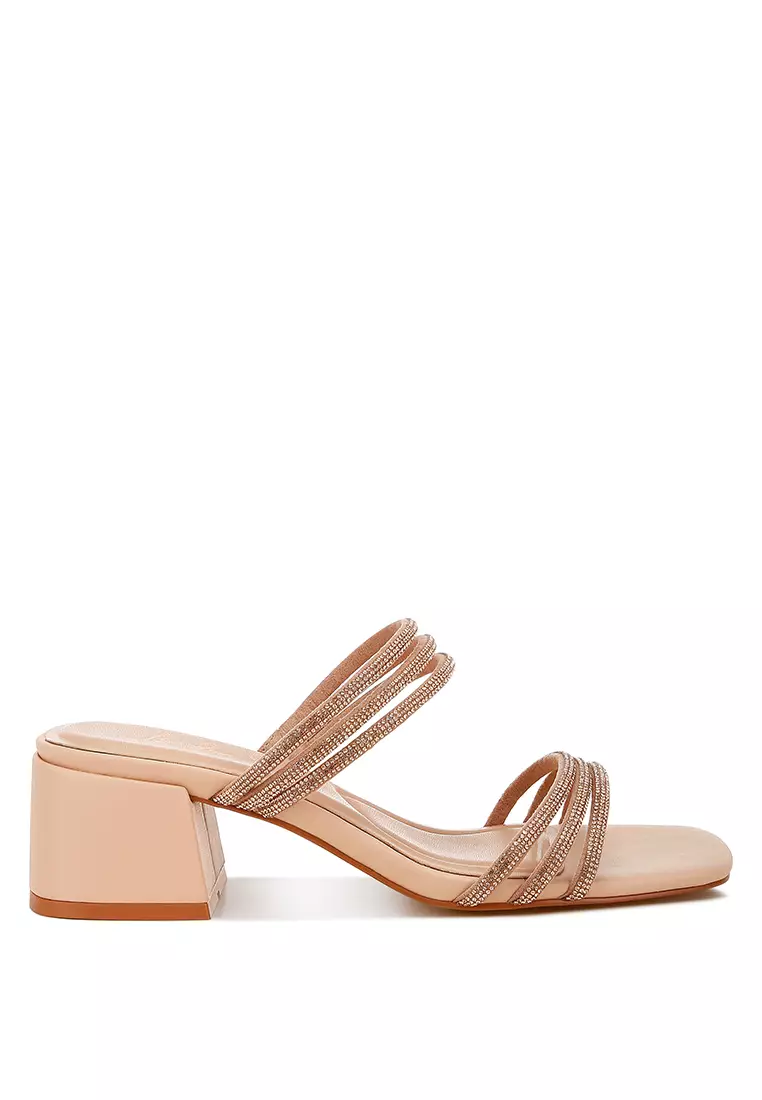 Sandal Slip-On Berhias Berlian Imitasi dalam Warna Nude