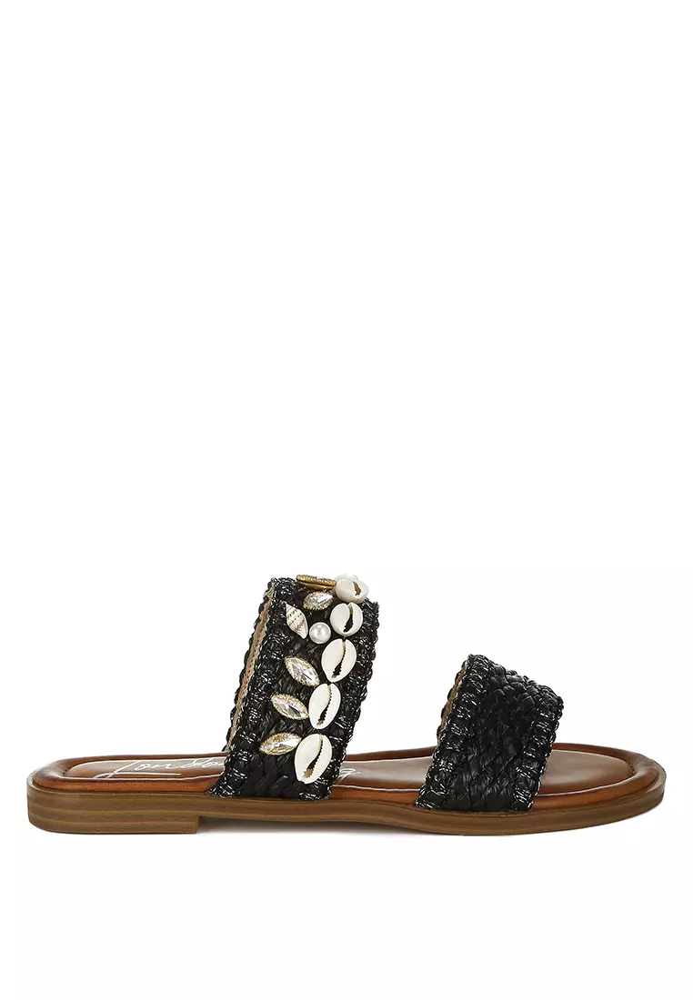 Sandal Slip-On Shell & Diamante dalam Warna Hitam