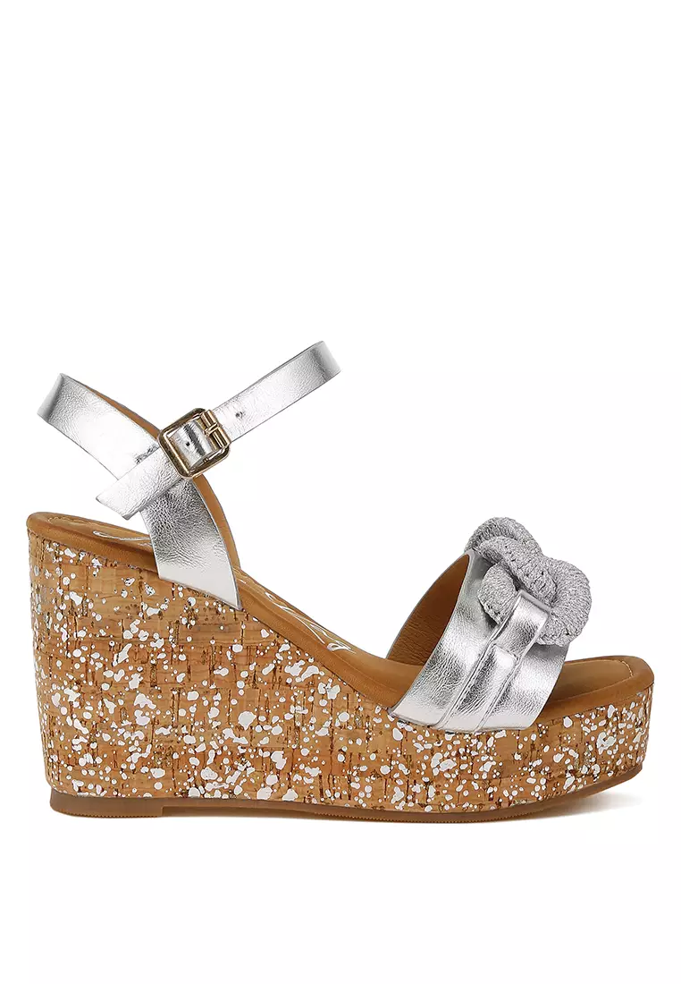 Sandal Wedge Detail Chain Link dalam Warna Perak