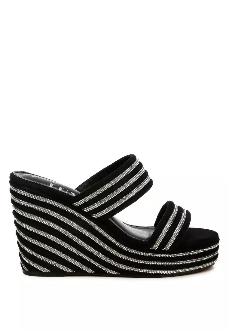 London RagSandal Wedges Berhias Berlian Imitasi dalam Warna Hitam3291889.00