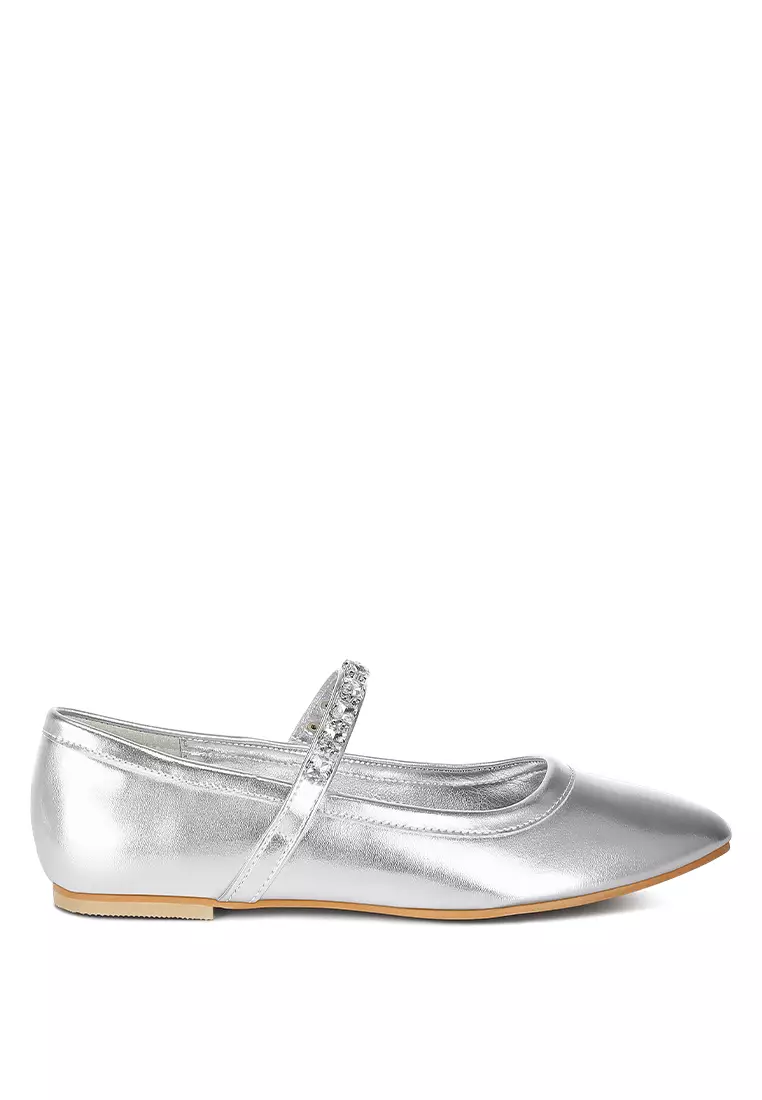 Sepatu Balerina Mary Jane Metalik Warna Perak
