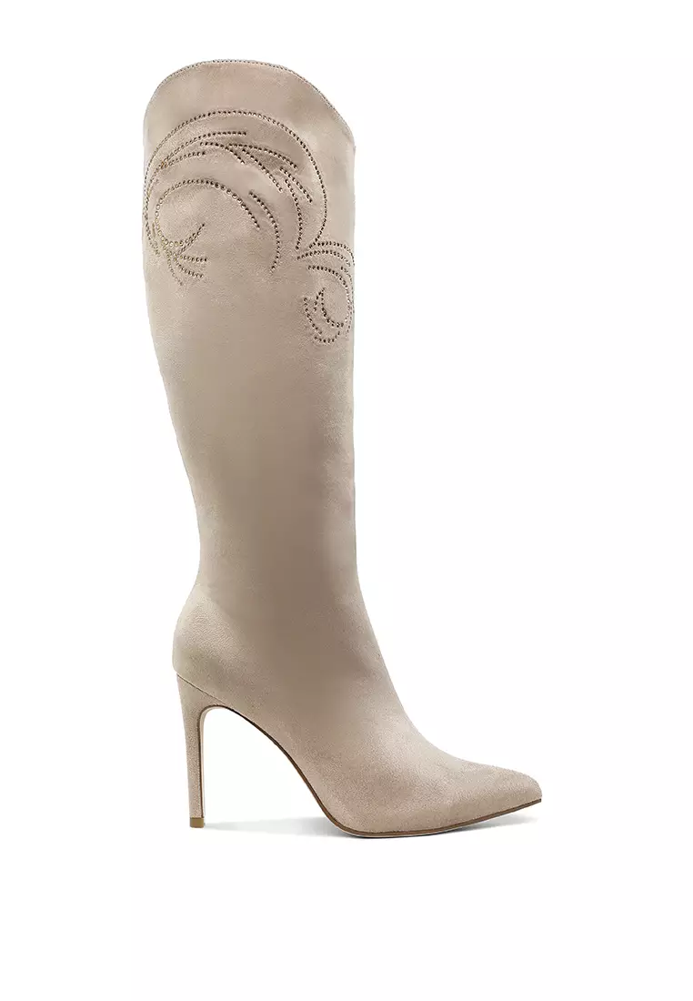 Sepatu Bot Anak Sapi Bermotif Berlian Imitasi Warna Beige