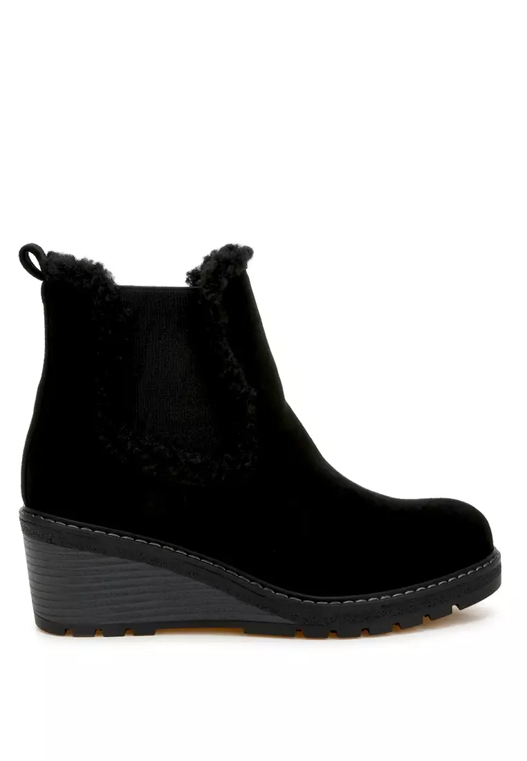 Sepatu Bot Chelsea Berjajar Bulu Palsu dalam Warna Hitam