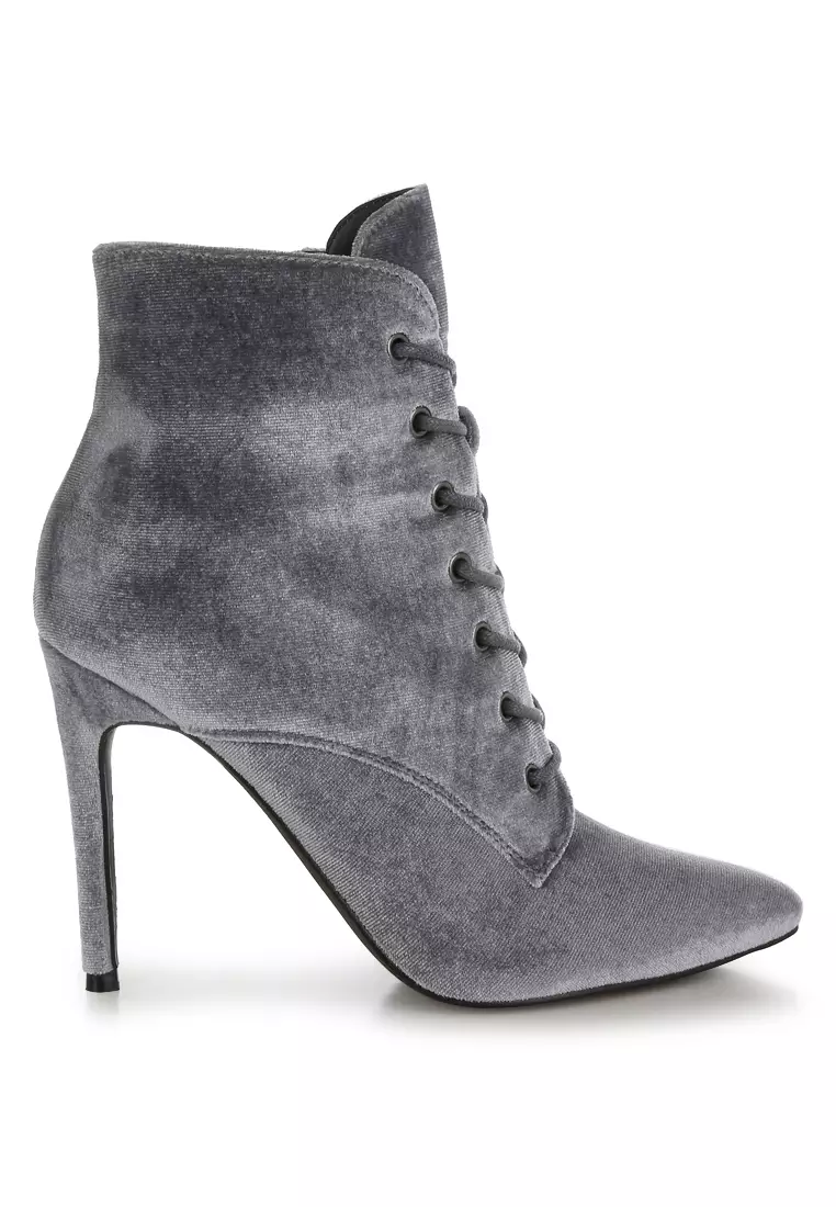 London RagSepatu bot hak tinggi beludru warna abu-abu3109839.00