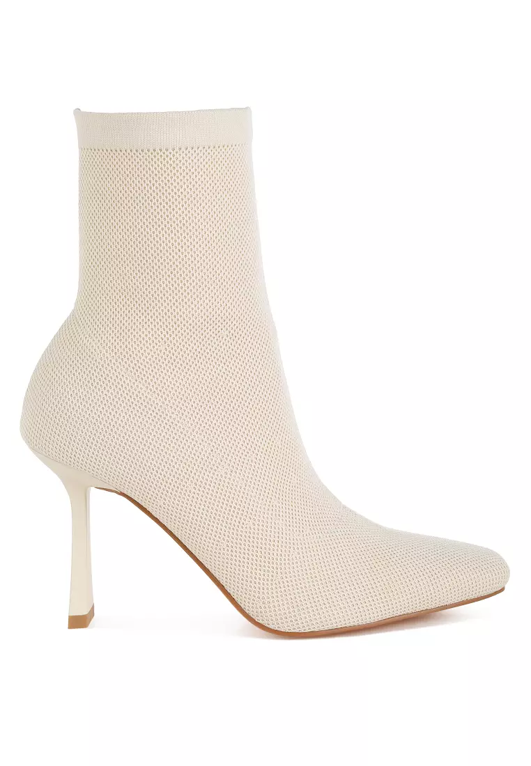 Sepatu Bot Kaus Kaki Rajutan Warna Putih Pucat