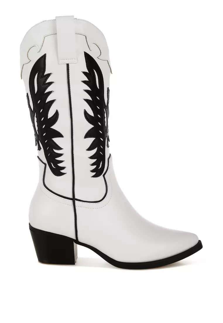 Sepatu bot koboi bermotif tambal sulam bersayap warna putih
