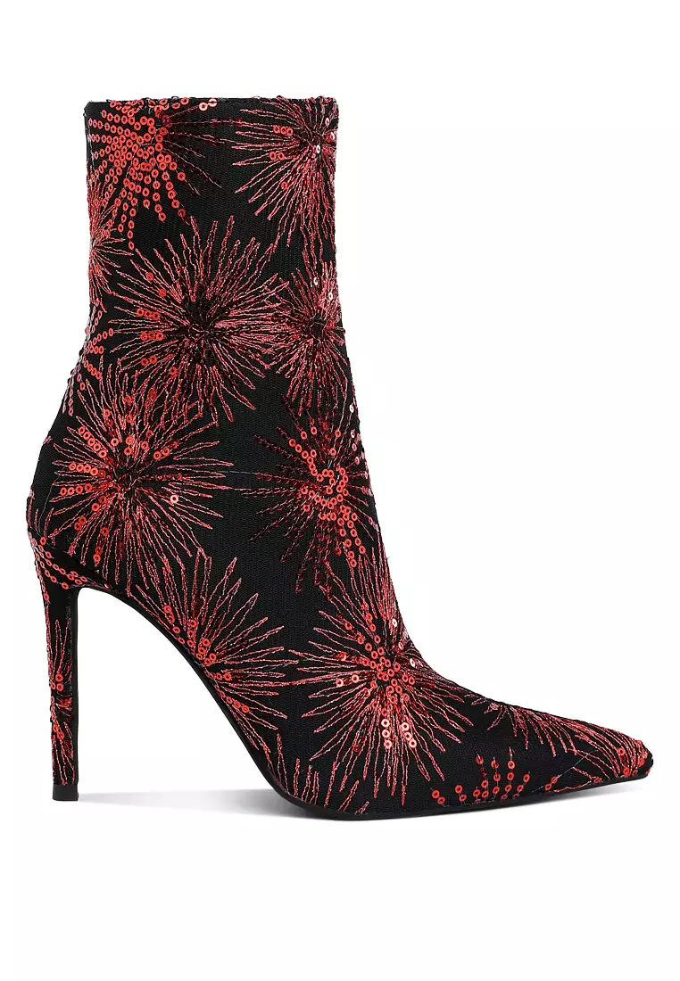 London RagSepatu bot stiletto berhias payet berwarna merah4763369.00