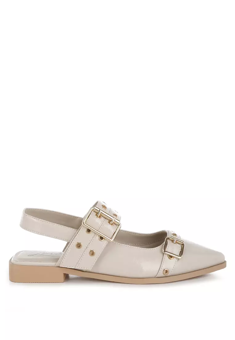 London RagSepatu Flat Berdetail Lubang Tali & Gesper dalam Warna Beige1488769.001265459.00
