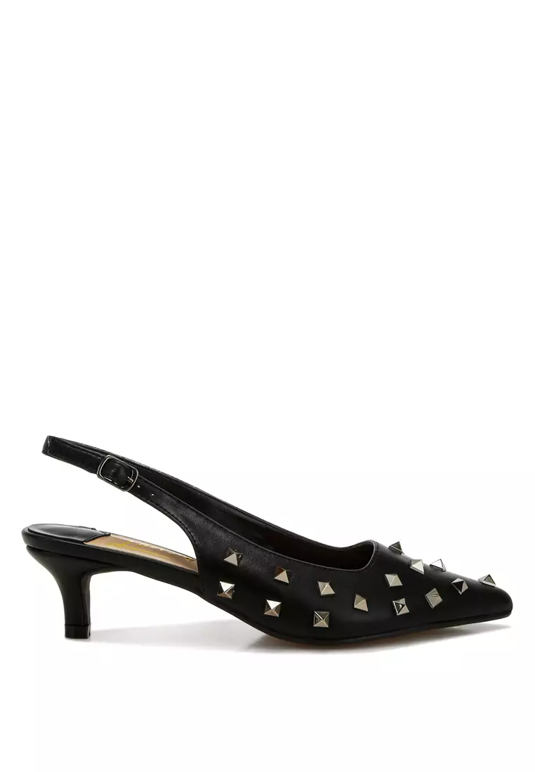 Sepatu hak anak kucing berhias stud berwarna hitam
